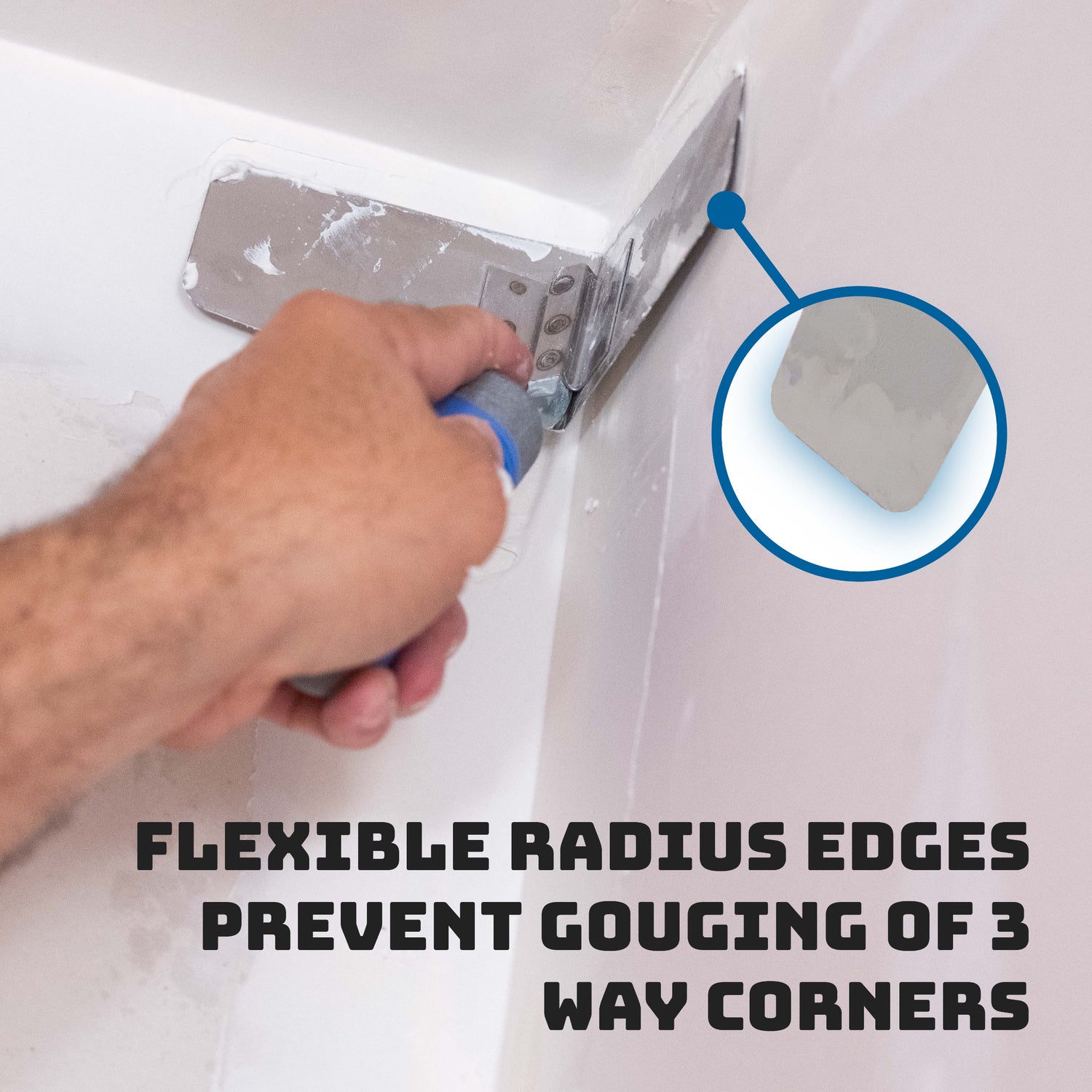 - Makes finishing inside corners easy
