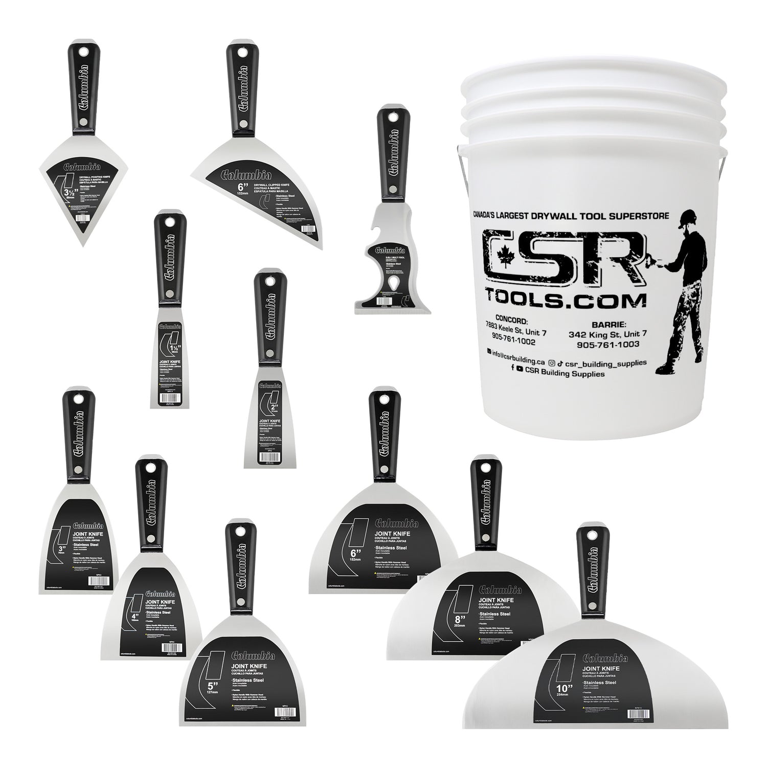 Columbia Complete Stainless Steel Putty Knife Set with Bucket