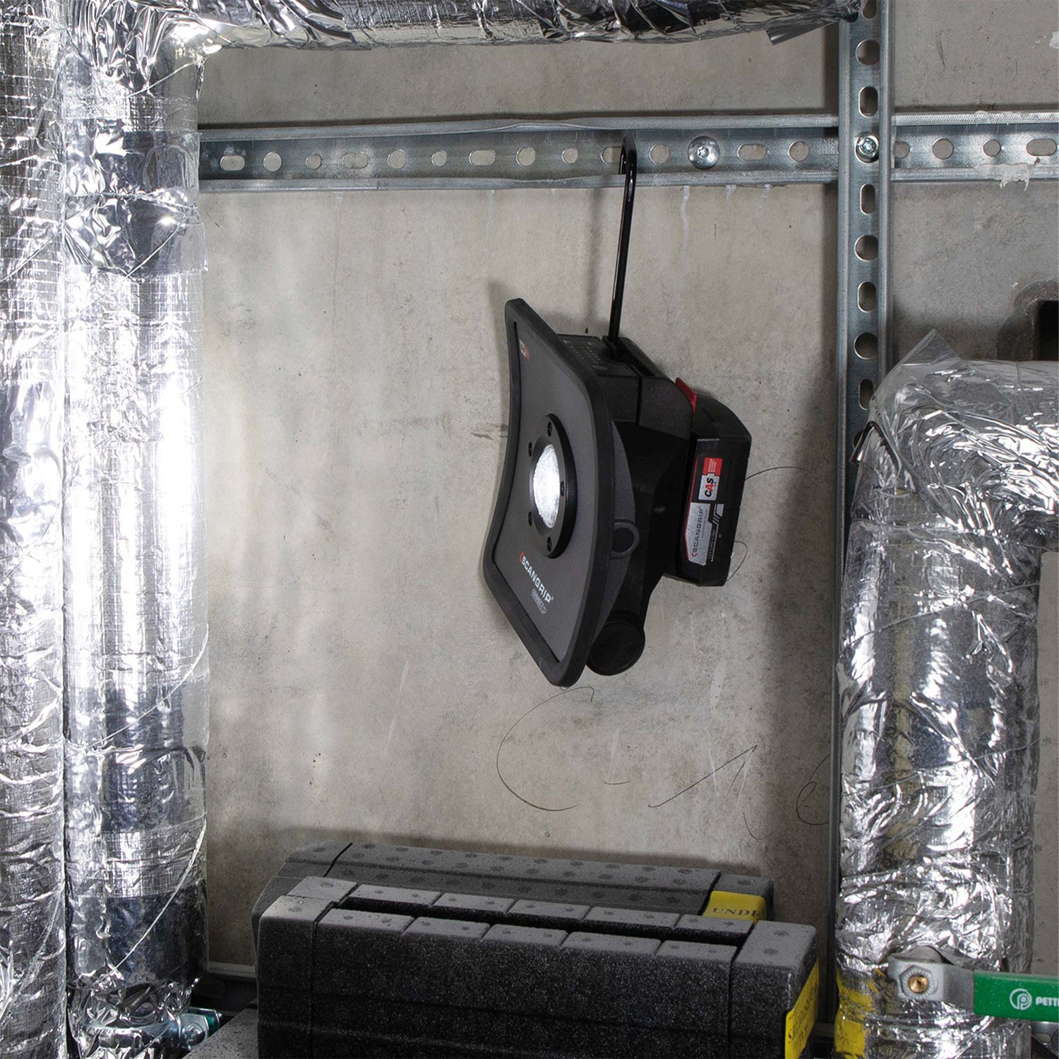 The floodlight features the latest high-performance COB LED technology and provides up to 2000 lumen. The light dimmer function makes it possible to adjust the light into five different steps according to the work task.