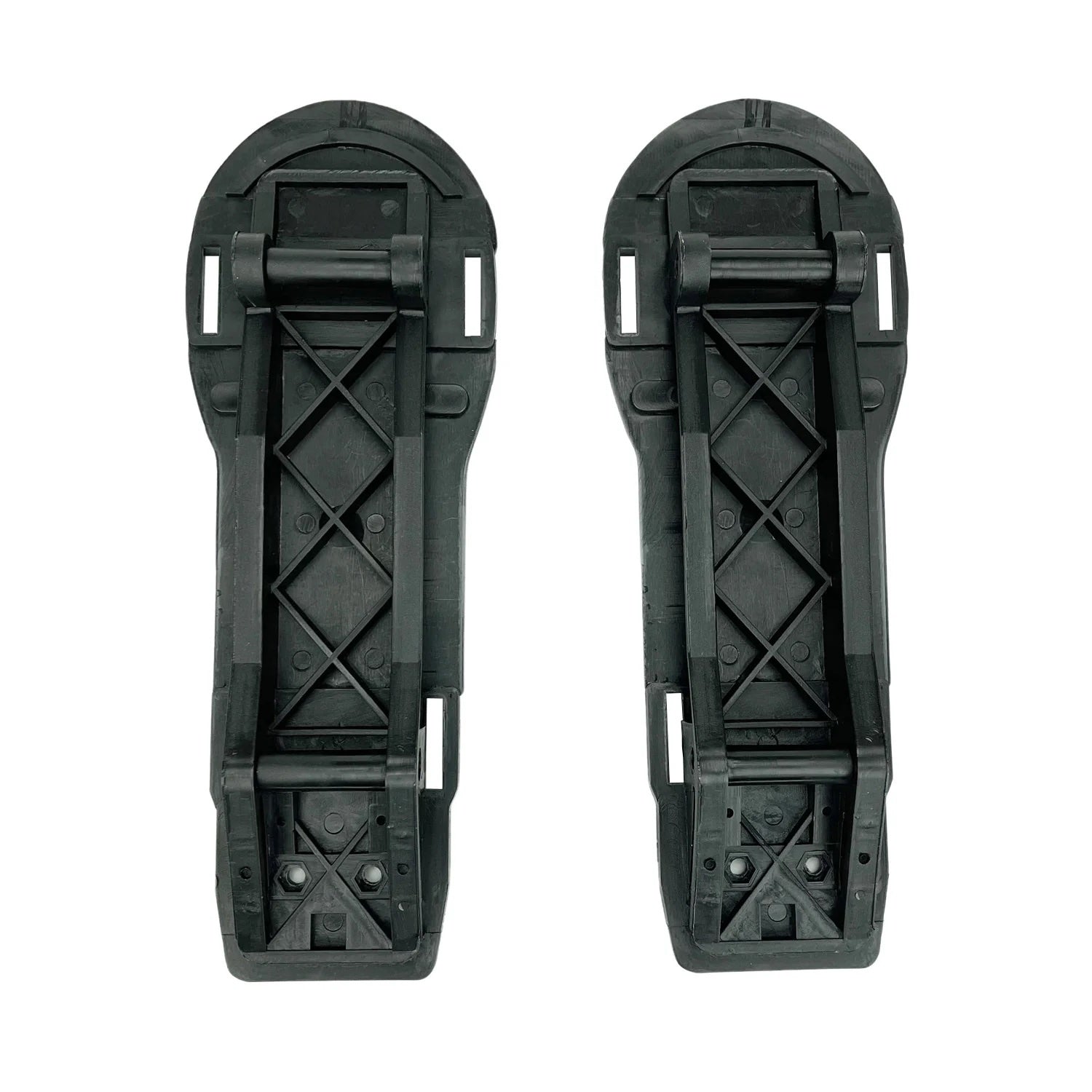 Foot Plate Kit (Pair). Customers love that our foot plates are wider than the other guys. Our larger foot bed is more stable and helps with balance no matter how big or small the user's feet are. Another nice benefit of our foot plate design is that we provide two different positions to mount your arch straps; the tradition position which is on the top of the foot bed (similar to how you mount your toe straps, or secondly, you can mount them on the lower portion of the foot plate behind the heel. Our secondary mounting position tends to hold your heels more securely in place, and also offers additional security and safety benefits due to the virtually indestructible geometry. Our foot plates are a SurPro exclusive!