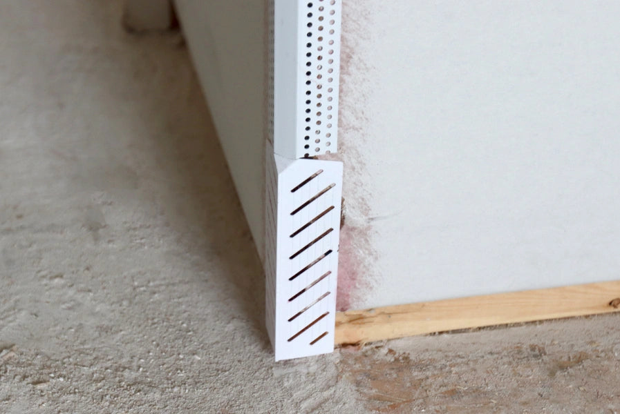 A perfect finish doesn’t always have to mean spending lots of time and money, and in areas where multiple Large Chamfer Beads meet, these molded corners are the perfect accessories for a faster finish. Base adapters transition Chamfer beads to 90-degree corners for installing baseboards.